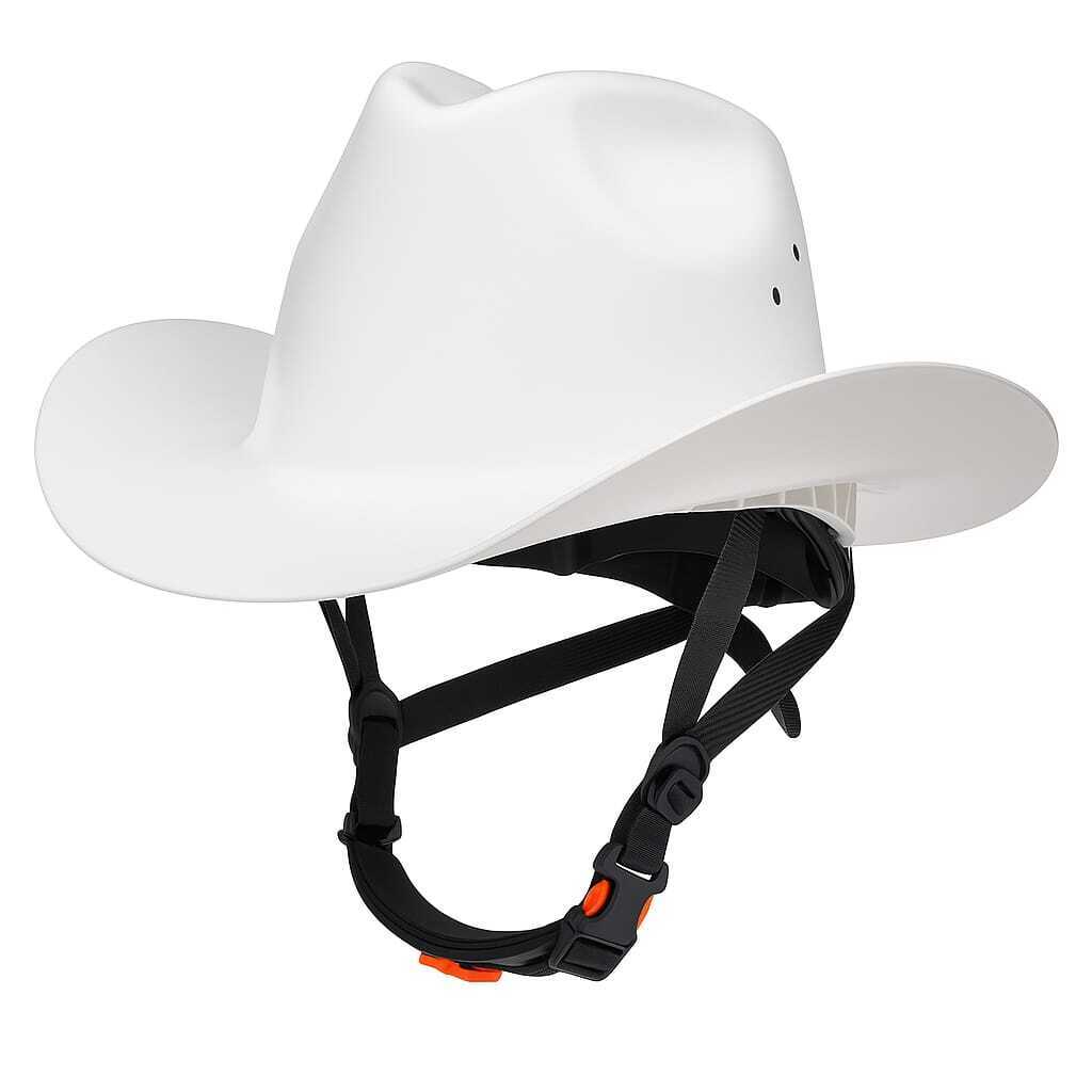 Эта каска — идеальное сочетание надежной защиты и выразительного дизайна. Выполненная в форме классической ковбойской шляпы, она обеспечивает не только безопасность, но и выделяет владельца из толпы.
